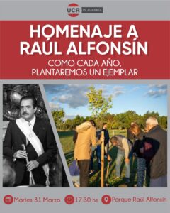 Este martes 31 de marzo en el marco del 17° aniversario del fallecimiento de Raúl Alfonsín, la Unión Cívica Radical de Olavarría realizará su tradicional homenaje al ex Presidente de la Nación.